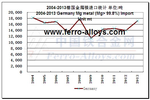 2004-2013�‡������V��Mg99.8%���ϣ��M(j��n)�ڽy(t��ng)Ӌ 2004-2013 Germany Mg Metal (Mg>99.8%) Import Statistic